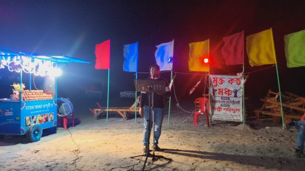 কুয়াকাটার মনোরম সমুদ্রসৈকতে পর্যটকদের আনন্দ দিতে শুরু হয়েছে এক ব্যতিক্রমী সাংস্কৃতিক আয়োজন। “মুক্ত মঞ্চ” আয়োজক দলের উদ্যোগে এবং “সাগরকন্যা ব্যান্ড” ও শিল্পী গোষ্ঠীর পরিবেশনায় নিয়মিতভাবে অনুষ্ঠিত হচ্ছে এই প্রাণবন্ত অনুষ্ঠান। পুরো আয়োজনটি পরিচালনায় রয়েছেন শিল্পী শহিদুল ইসলাম। প্রতিদিনের এই আয়োজন আরোও পড়ুন